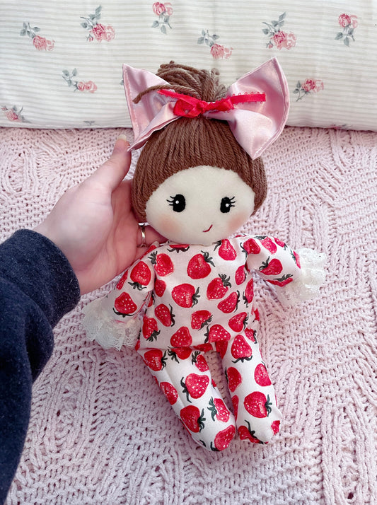 Bitty Valentine Baby 🍓❤️- Strawberry, Cloth Doll, Heirloom Doll, Handmade Doll