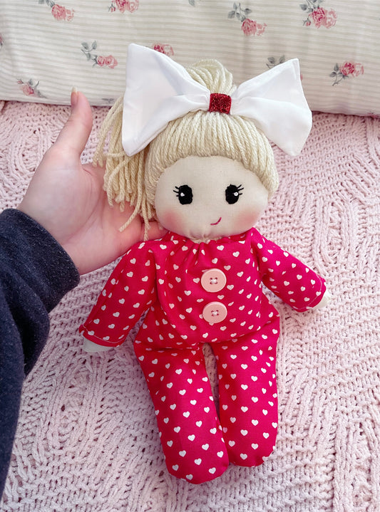 Bitty Valentine Baby ❤️ - Heart Polka Dots, Cloth Doll, Heirloom Doll, Handmade Doll