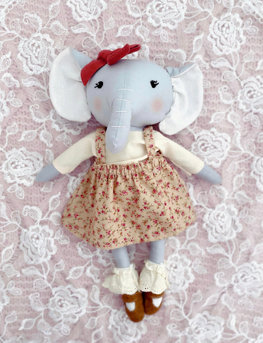 Elephant Doll, Heirloom doll, ragdoll, handmade doll