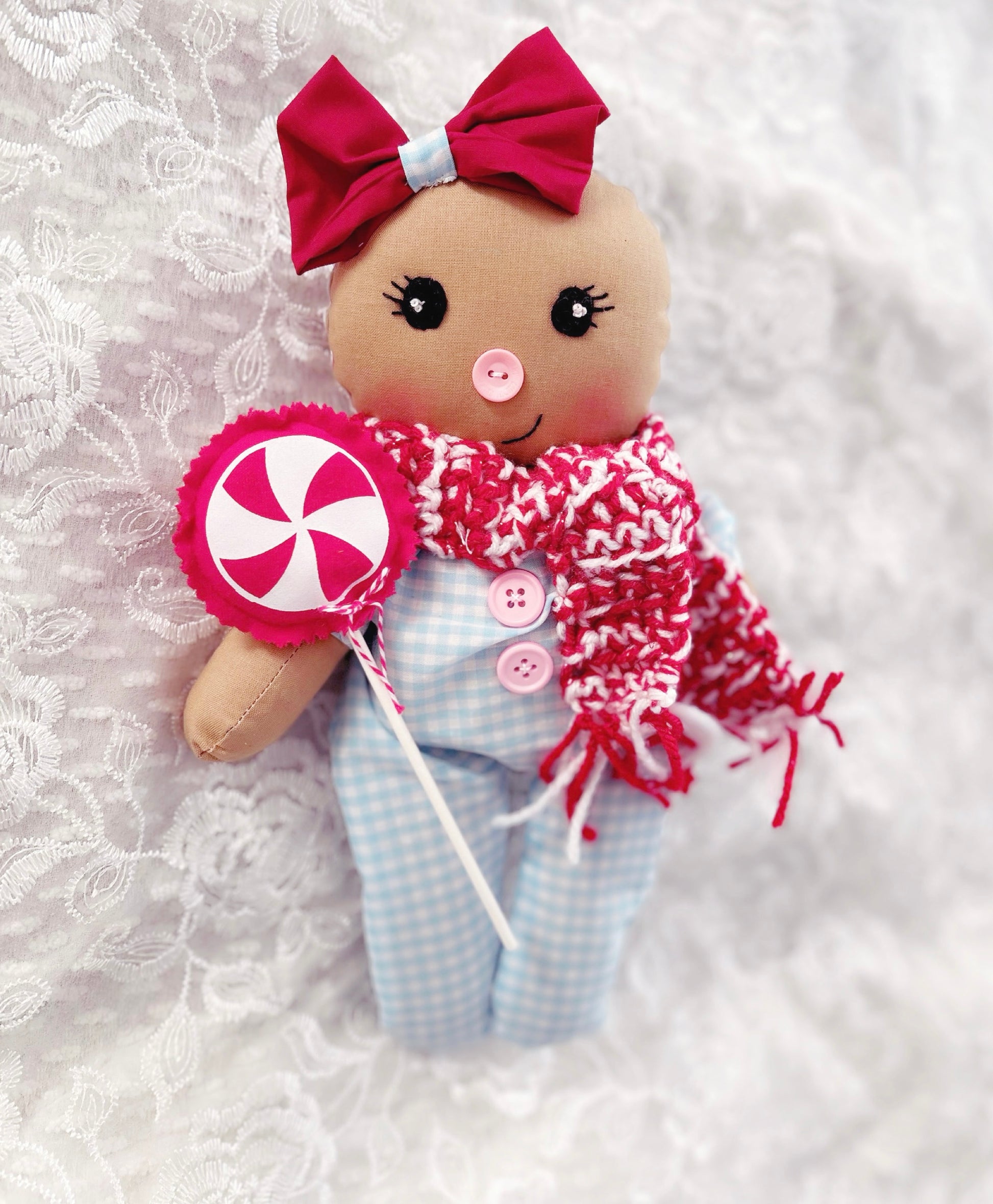 Handmade Gingerbread Baby Doll (Blue)