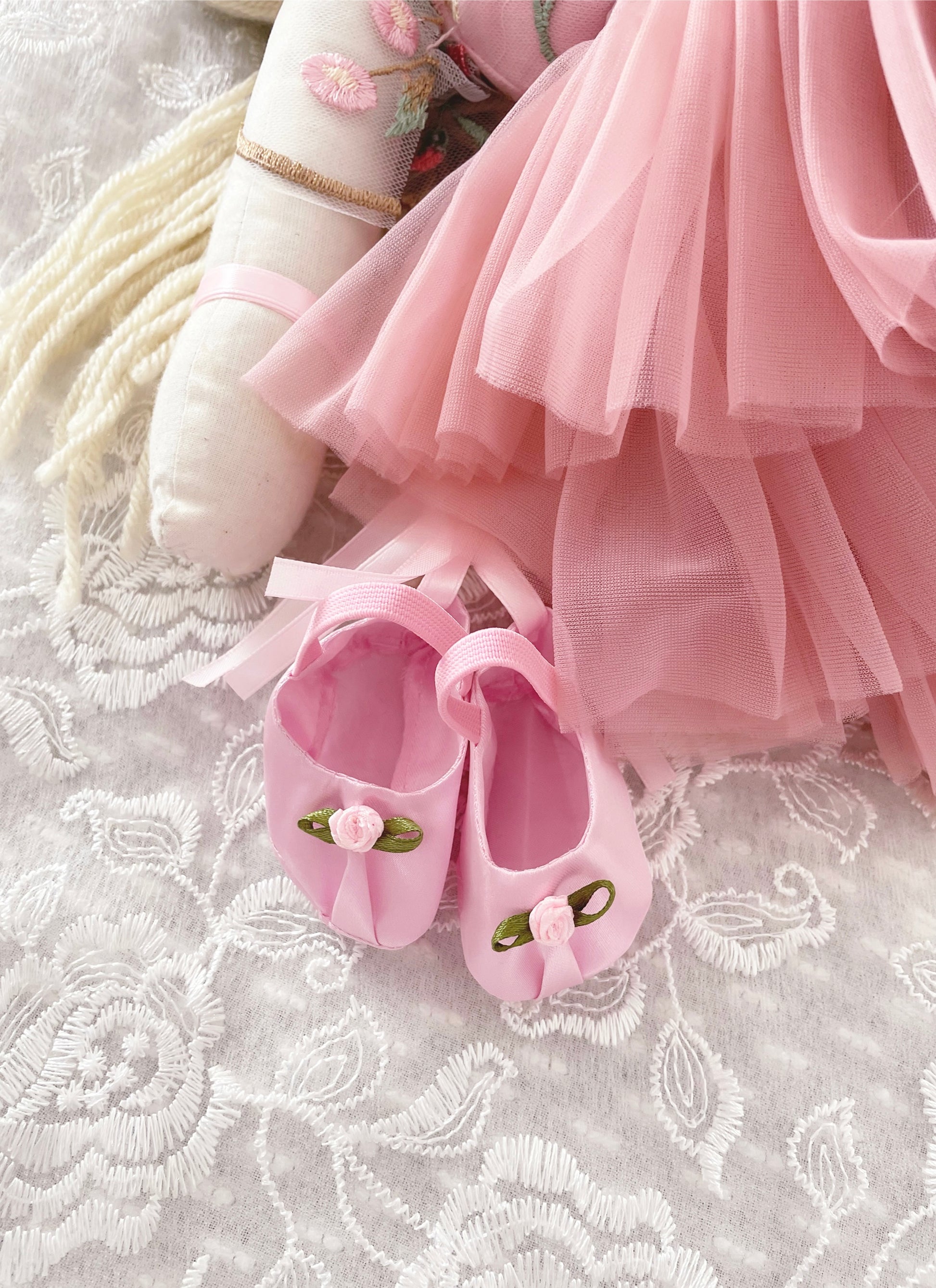 The dress/tutu and flower crown are not removable. The satin shoes are removable.