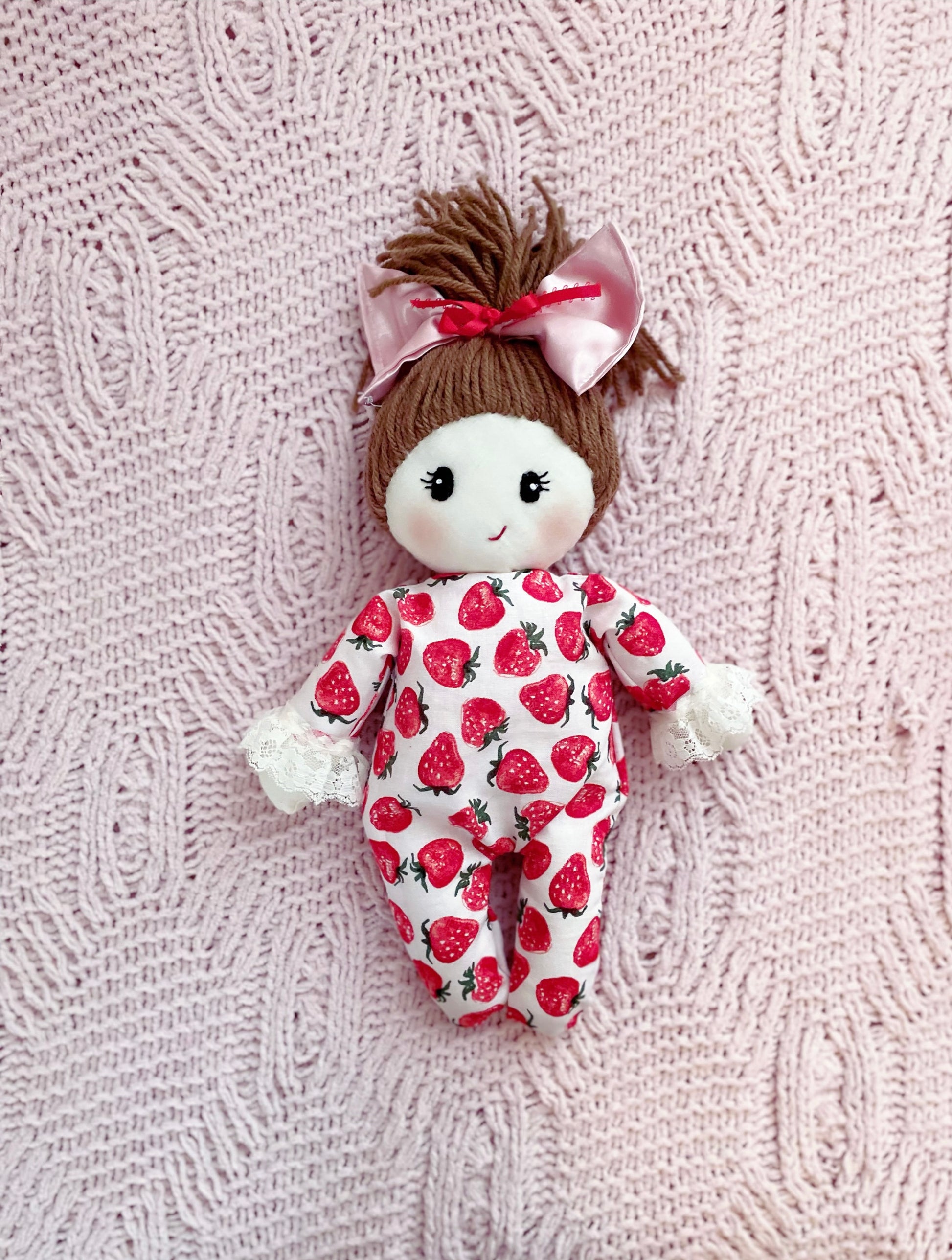 Bitty Valentine Baby 🍓❤️- Strawberry, Cloth Doll, Heirloom Doll, Handmade Doll